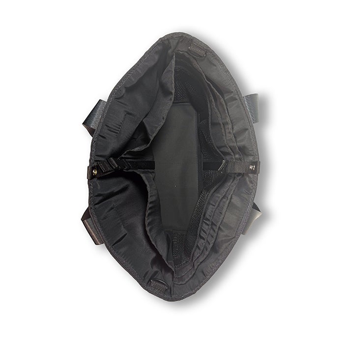 自動車内装の端材とシートベルト端材をアップサイクルして製作した、環境に配慮したショルダーストラップ付きトートバッグです。 丈夫で実用的な設計で、アウトドアにも普段使いにも最適。肩掛け・手持ちの2WAYでシーンを選ばずお使いいただけます。
